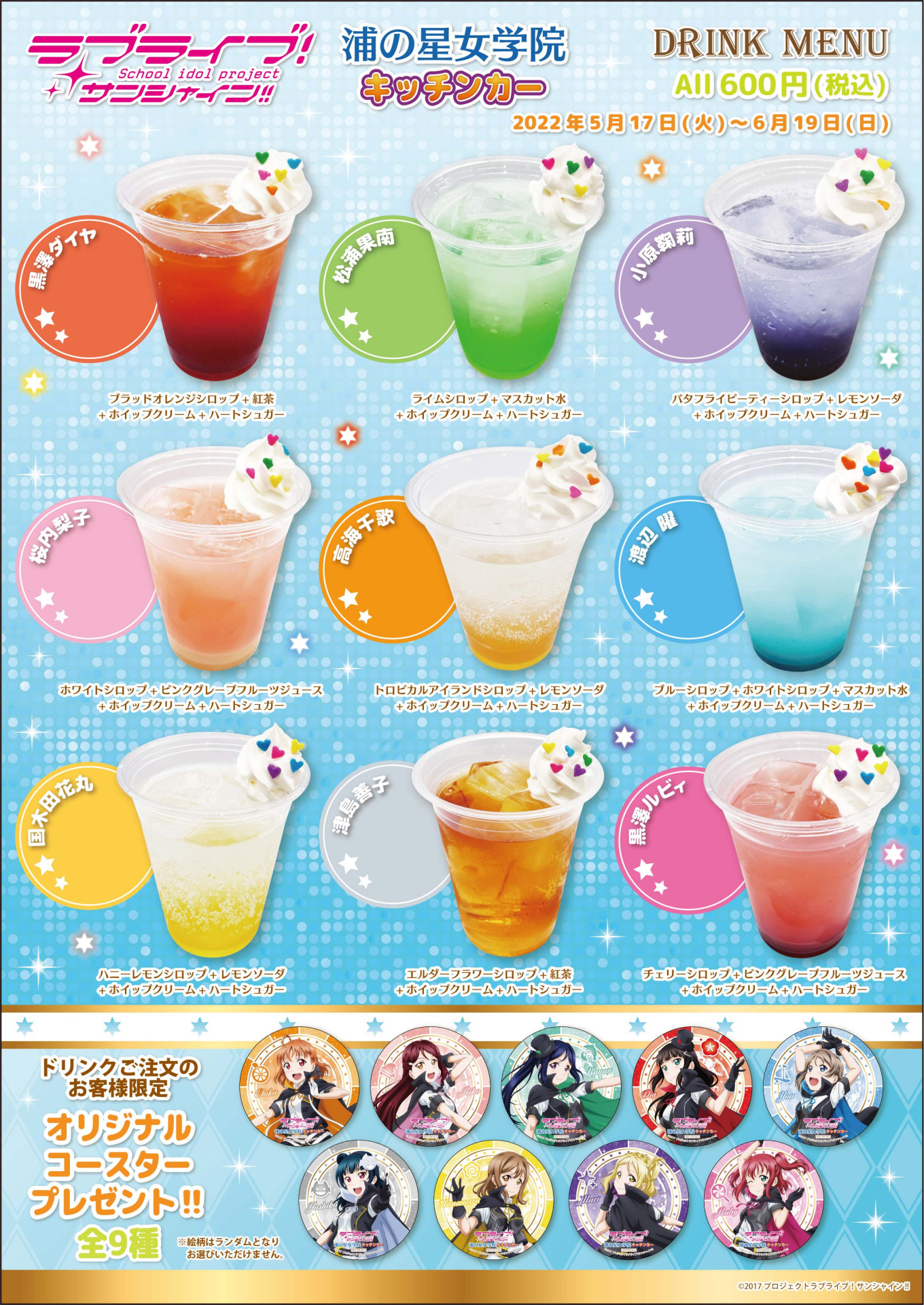 沼津エリアにて営業中の『浦の星女学院キッチンカー』ですが、この度ドリンクメニューが一新となり、特典のコースターも変更になります!